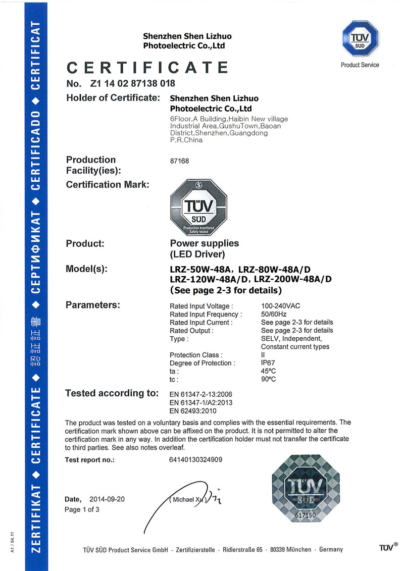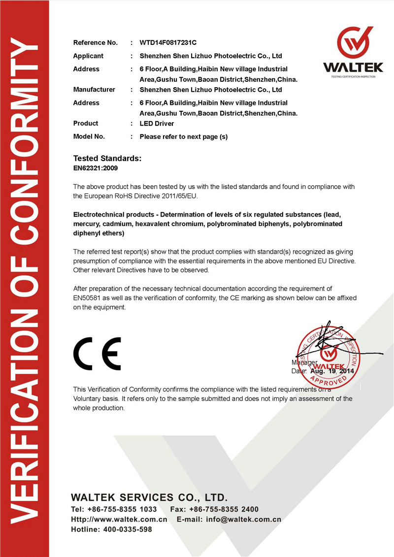 深力卓具有10年的行業(yè)經(jīng)驗(yàn),LED驅(qū)動(dòng)電源系列產(chǎn)品已通過(guò)CE、ROHS、SAA、TUV、CB等國(guó)際產(chǎn)品認(rèn)證。通過(guò)國(guó)家安規(guī)檢測(cè)標(biāo)準(zhǔn),產(chǎn)品質(zhì)量更有保證,性能更加,可出口貿(mào)易。