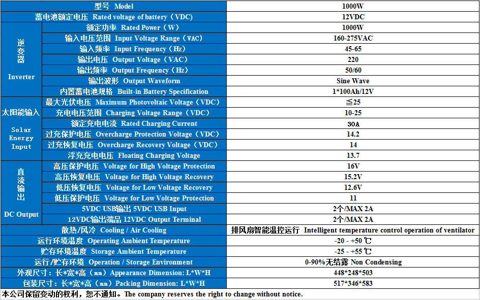 Output overload and short circuit protection, various automatic protections, and alarm prompts;